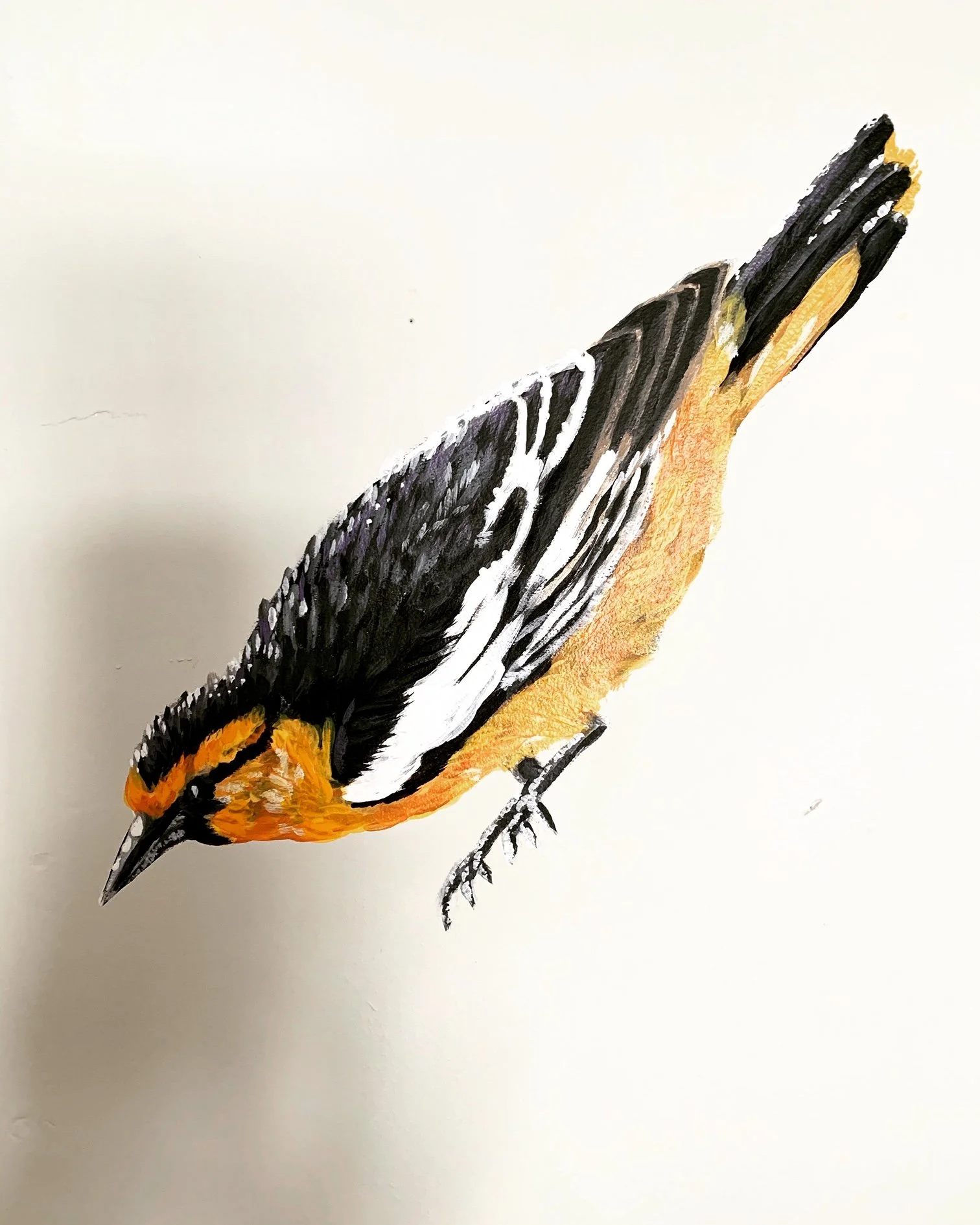 YELLOW-RUMPED WARBLER, acrylic on wall.