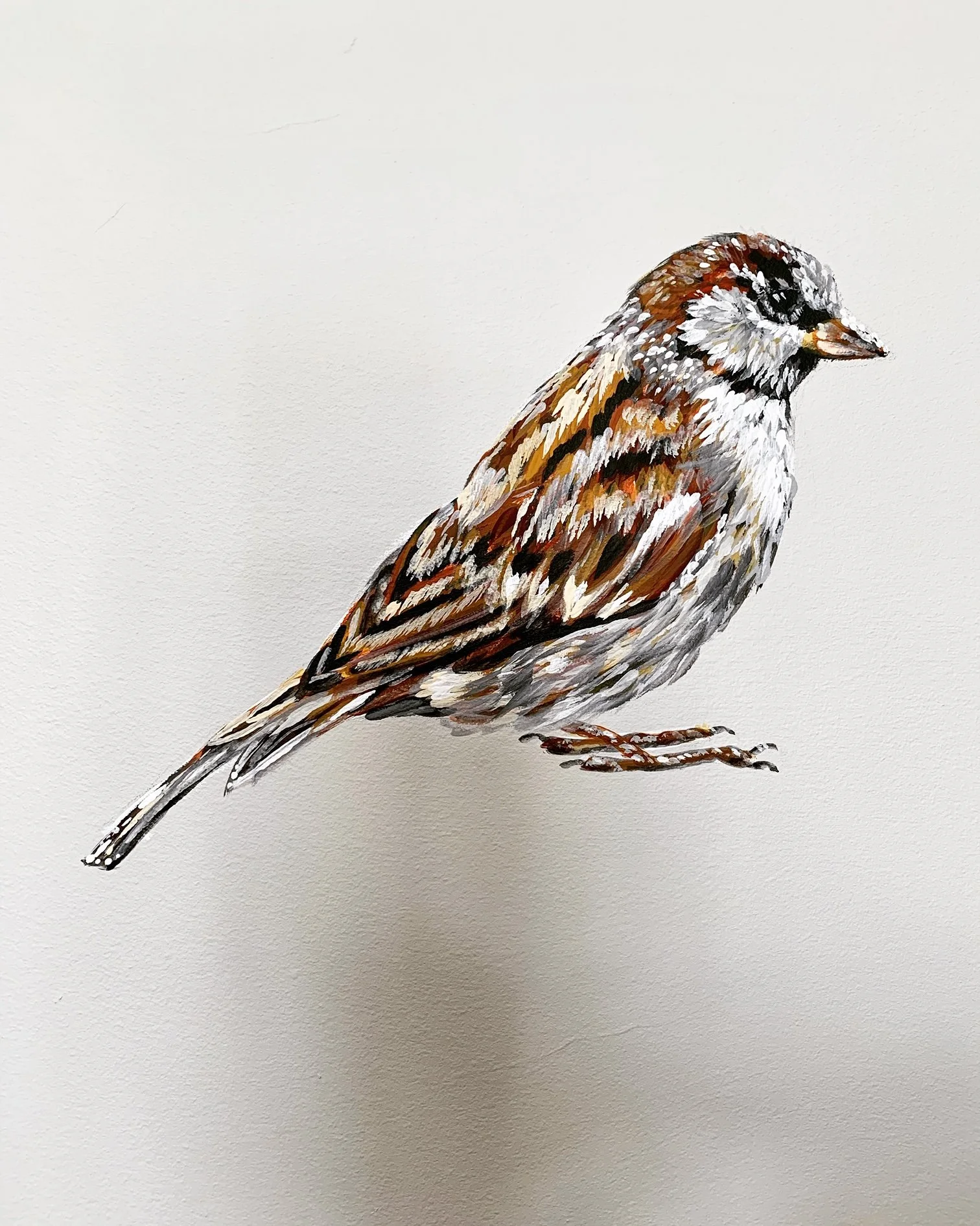 CLAY-COLOURED SPARROW, acrylic on wall.